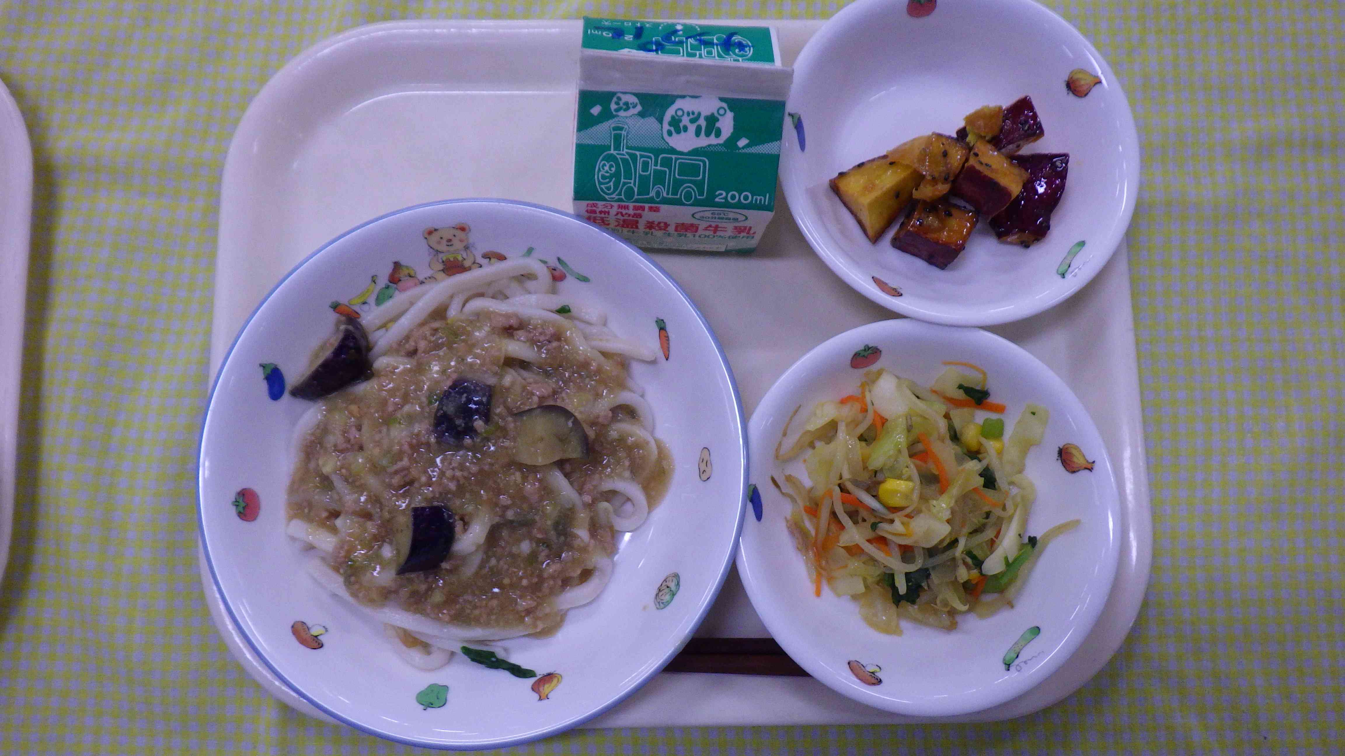 ごまみそあんかけうどん カレーソテー 大学芋 牛乳