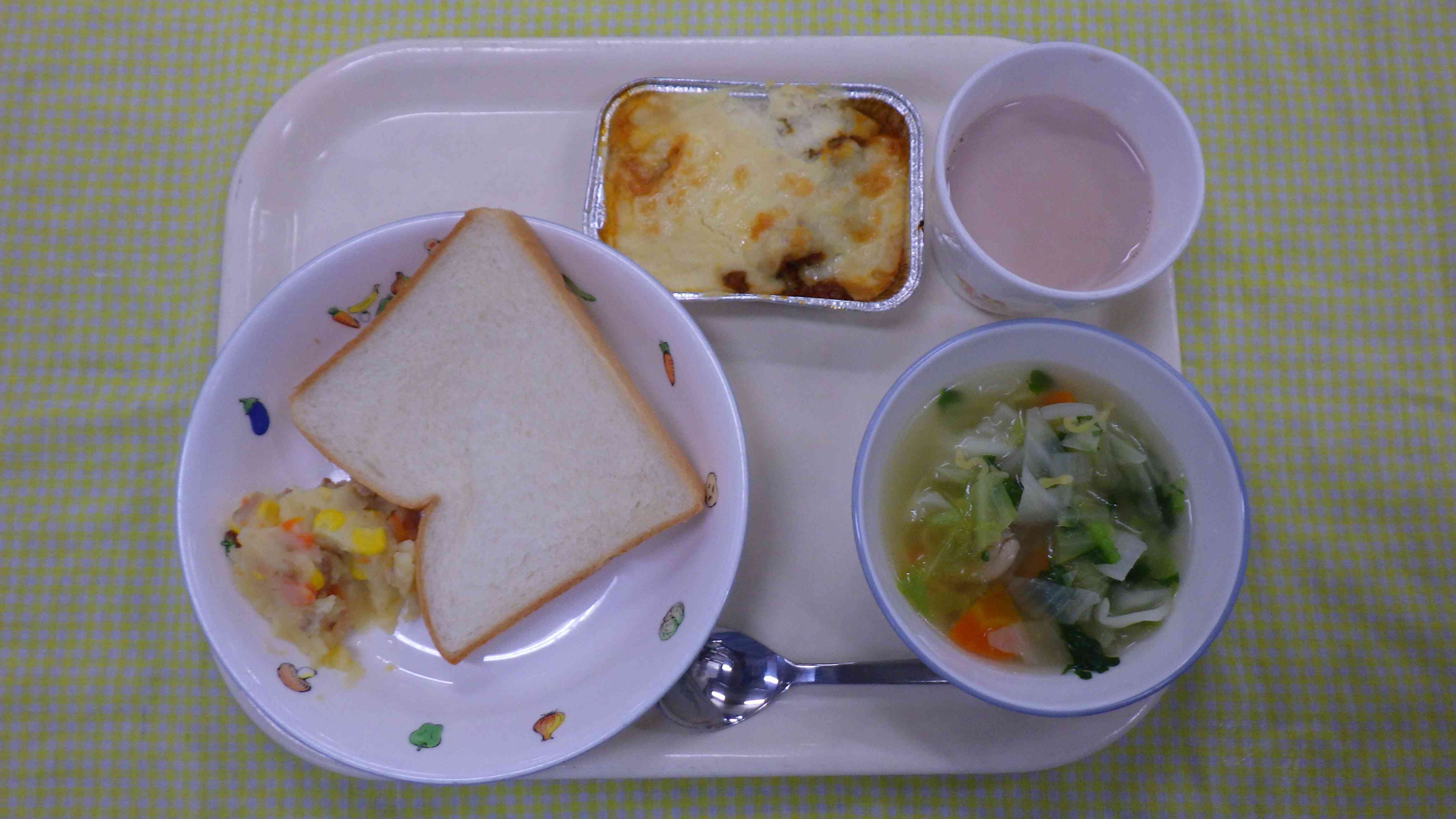 オープンサンド(ポテトサラダ) ABCスープ ふわふわグラタントマトソース ミルクココア