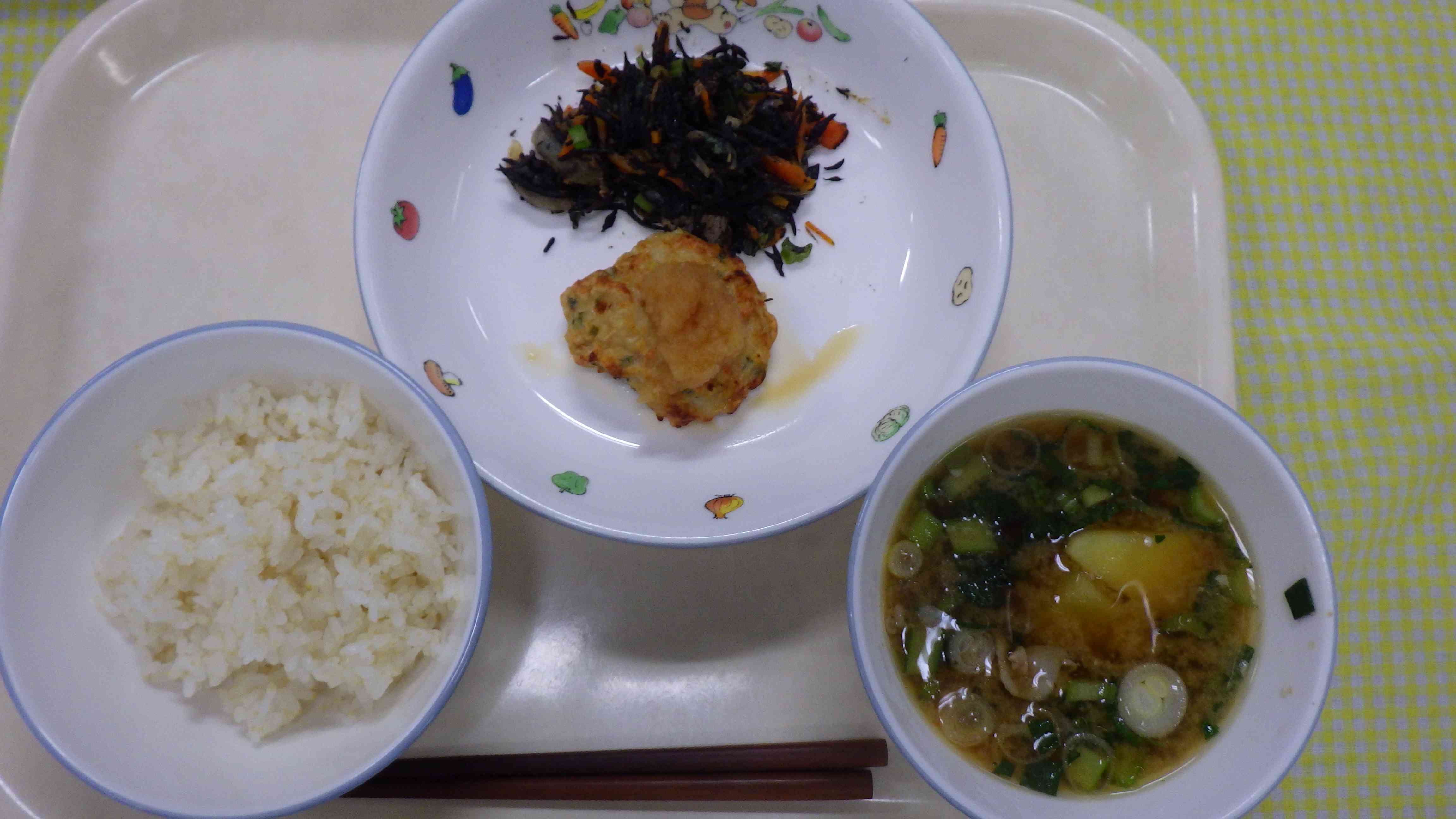 ごはん さつま汁 つくね焼きおろしソース ひじきの炒め物