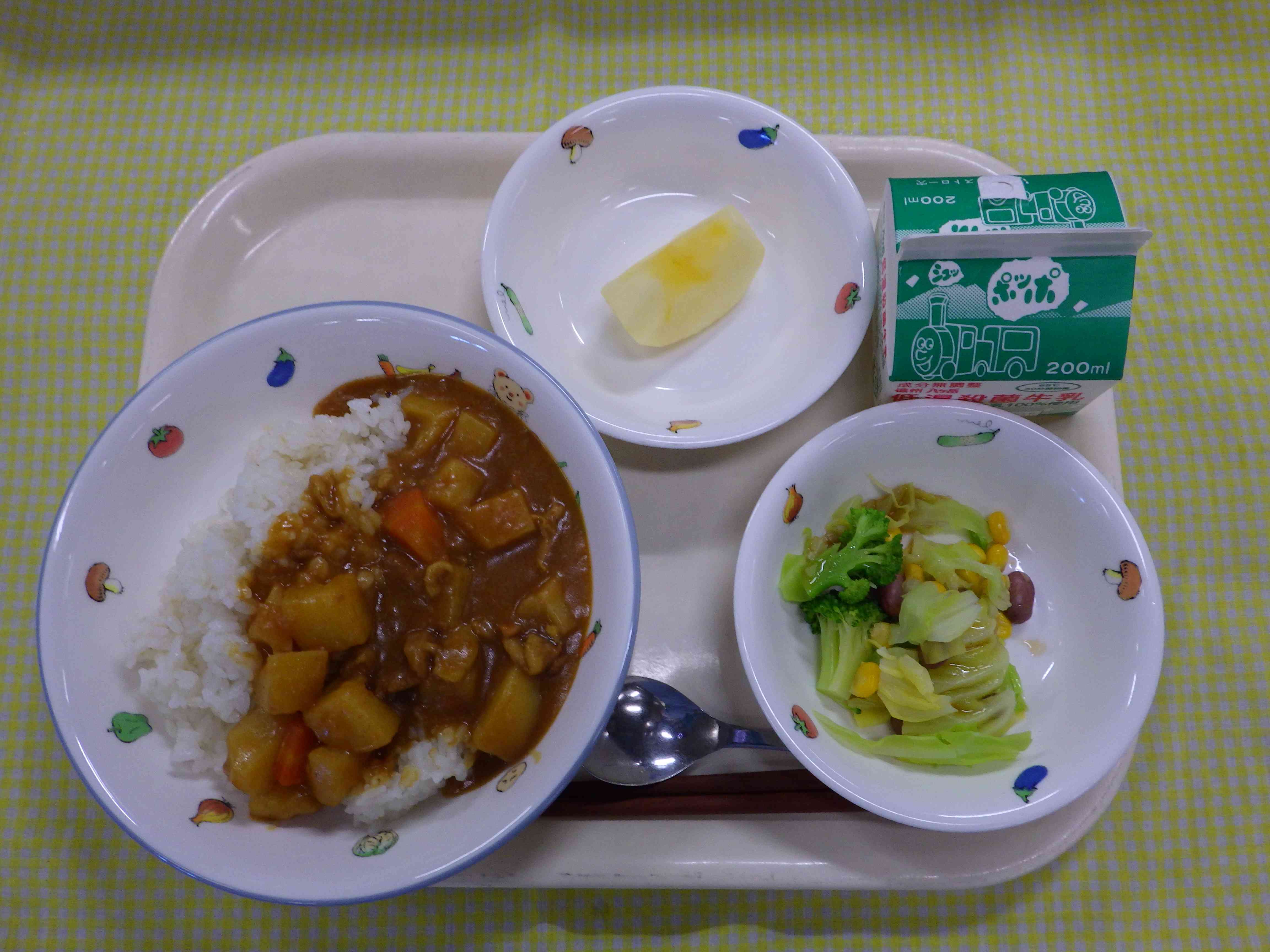 カレーライス ボイル野菜 和風ドレッシング りんご 牛乳