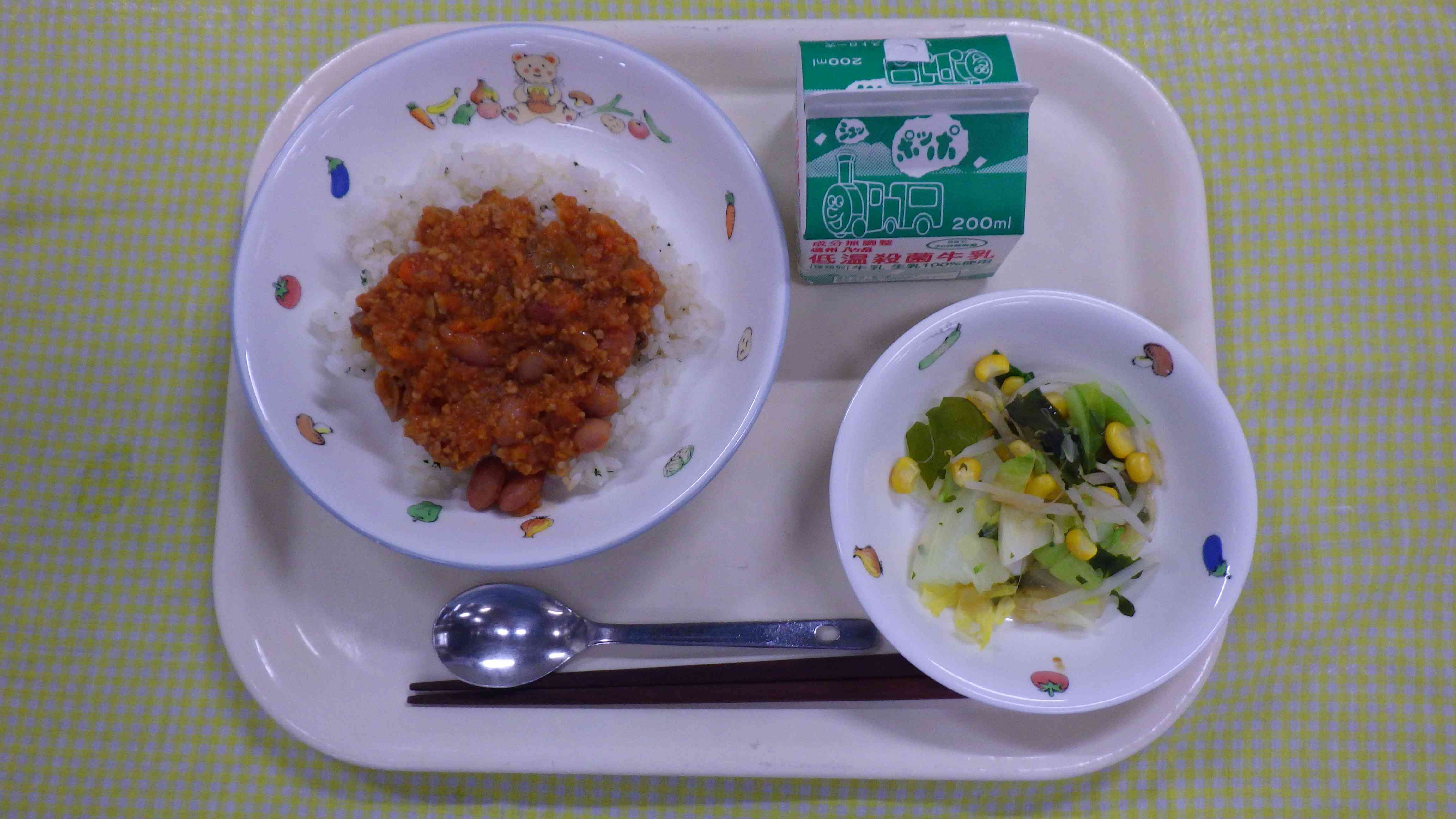 チリライス ボイル野菜 和風ドレッシング 牛乳