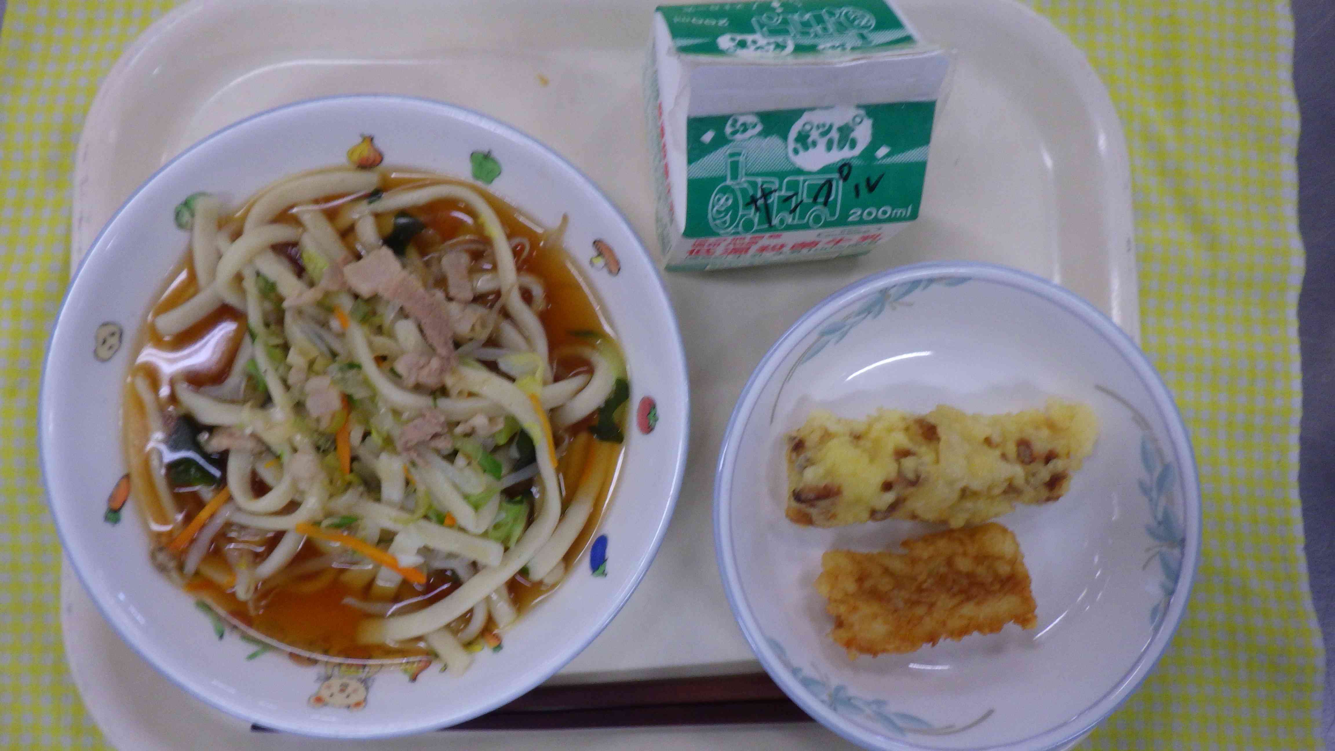 冷やしサラダうどん 天ぷら(いか・ちくわ) 牛乳