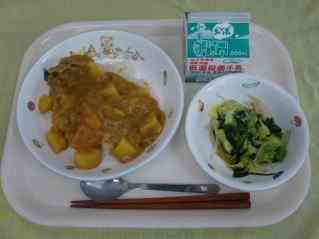 カレーライス ボイルやさい 和風ドレッシング 牛乳