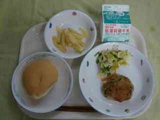 丸パン ハンバーグトマトソース から揚げポテト 野菜ソテー 牛乳