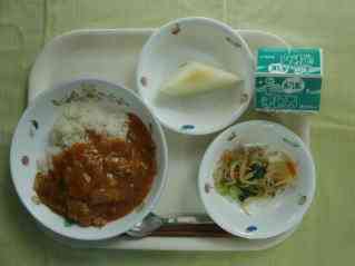 ハヤシライス 温野菜 味の香メロン 牛乳