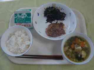 ごはん けんちん汁 豚肉の生姜焼き ひじきの炒め物 牛乳
