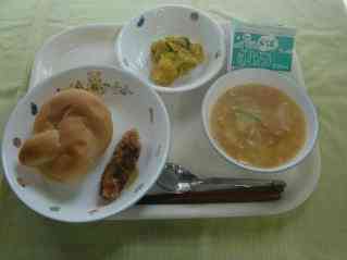 フィッシュバーガー 夏野菜ミネストローネスープ かぼちゃのクリーム煮 牛乳