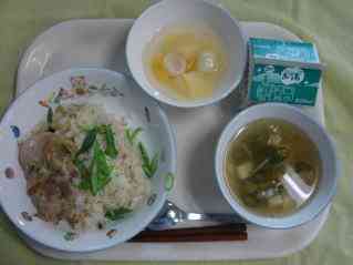 炊き込みちらし寿司 七夕汁 鶏のみそ焼き フルーツ白玉 牛乳