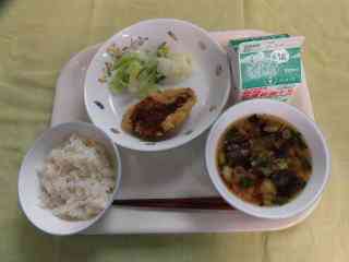 ごはん みそ汁 あじのフライ キャベツソテー 牛乳