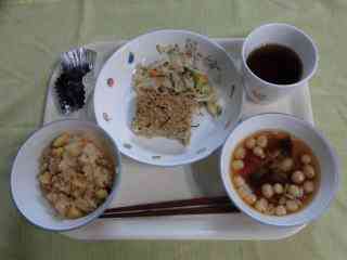 秋の香りごはん みそ汁 松風焼き 温野菜 ぶどう 牛乳