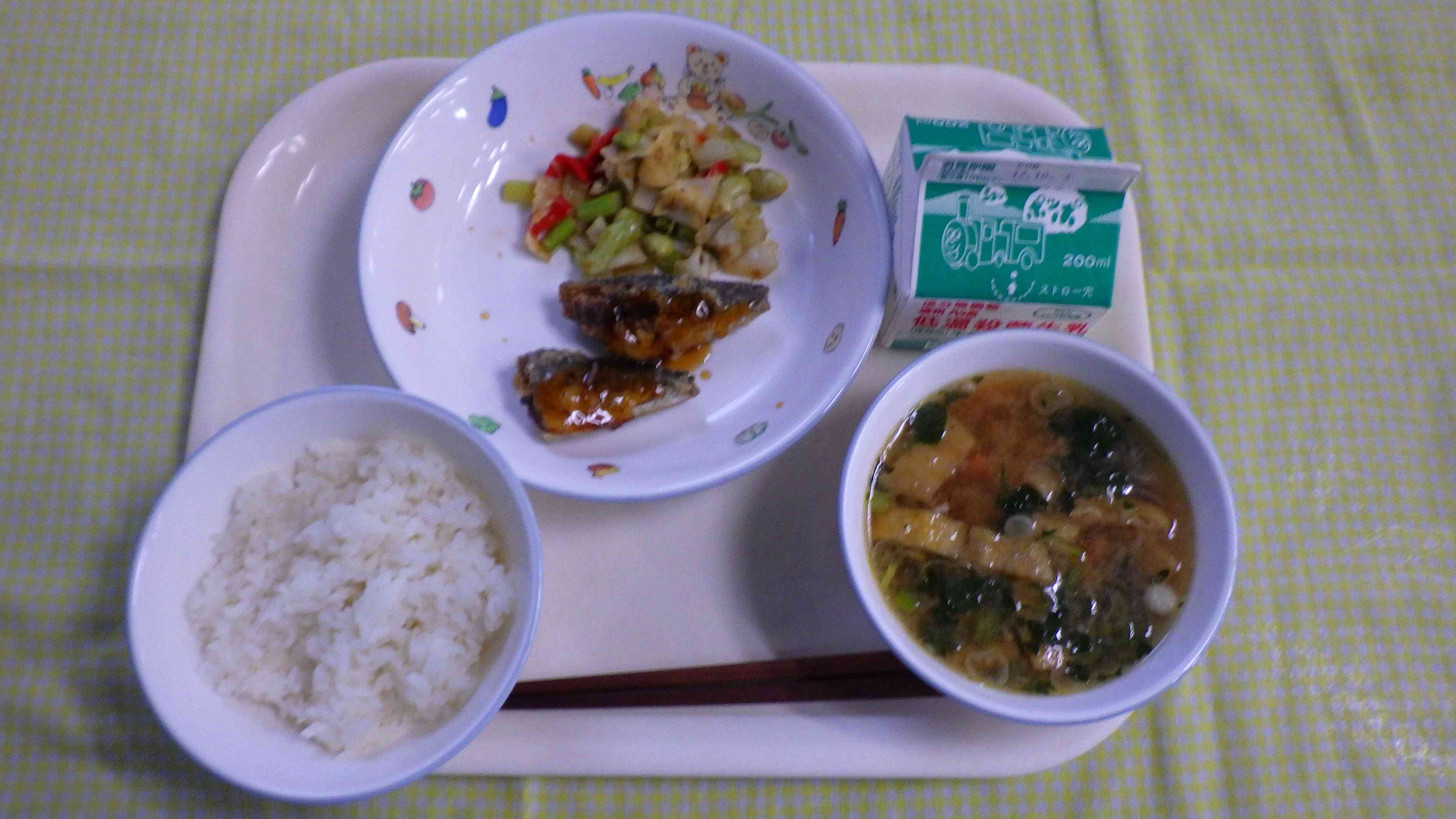 ごはん 豚汁 まめあじの甘辛揚げ 青大豆の温サラダ 牛乳