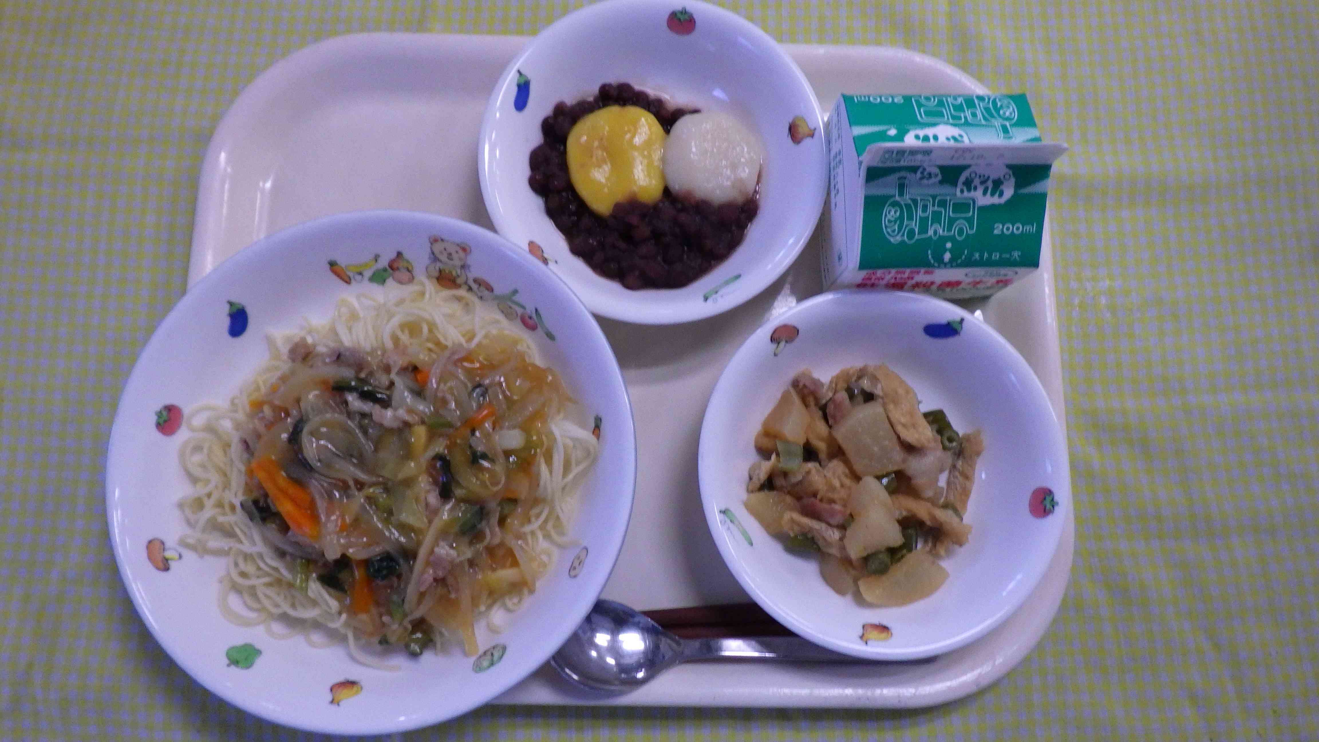 ★お月見メニュー★ 焼きそば五目あんかけ 大根と油揚げの煮物 お月見だんご