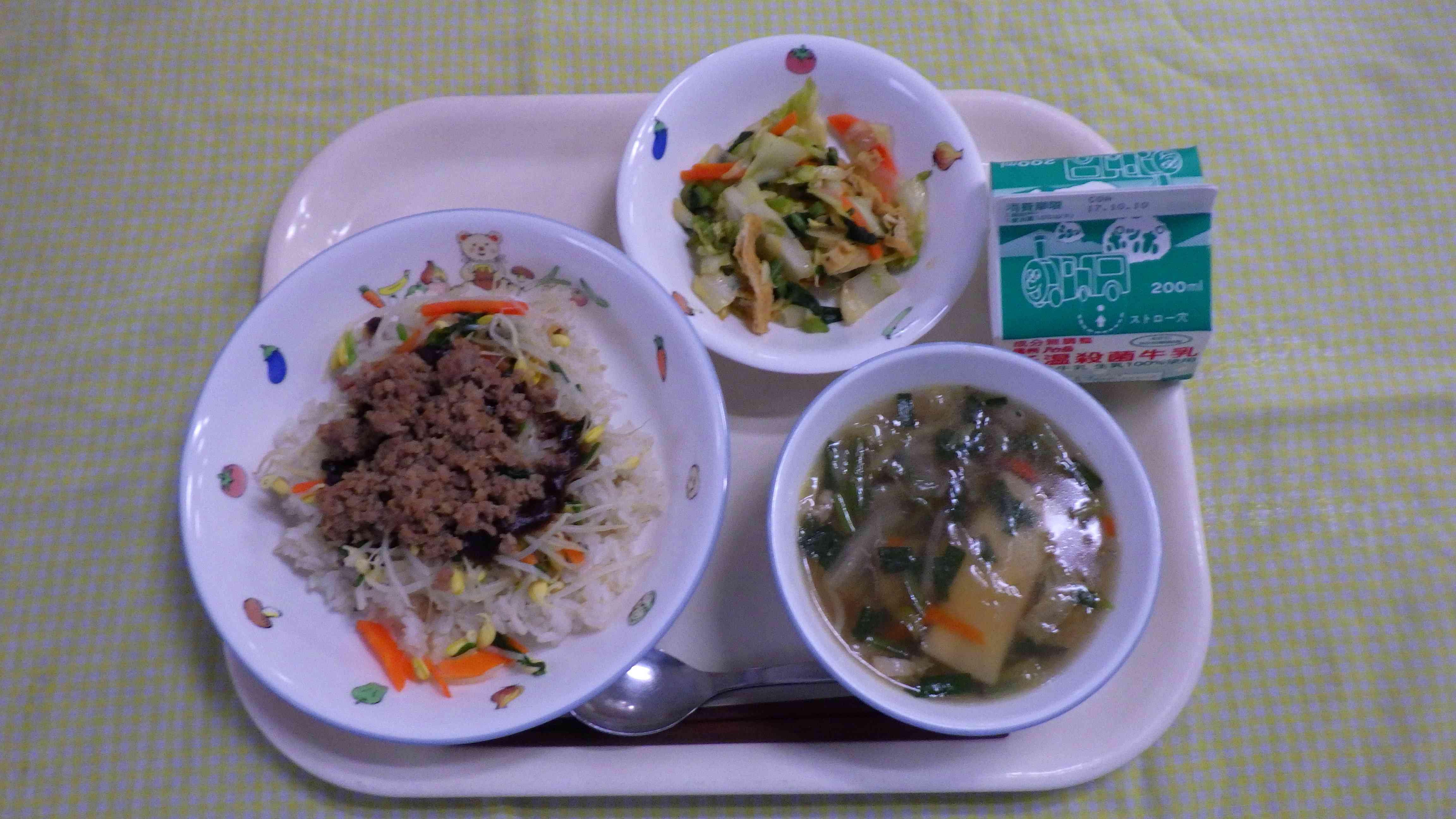 ビビンバ ワンタンスープ 温野菜 牛乳