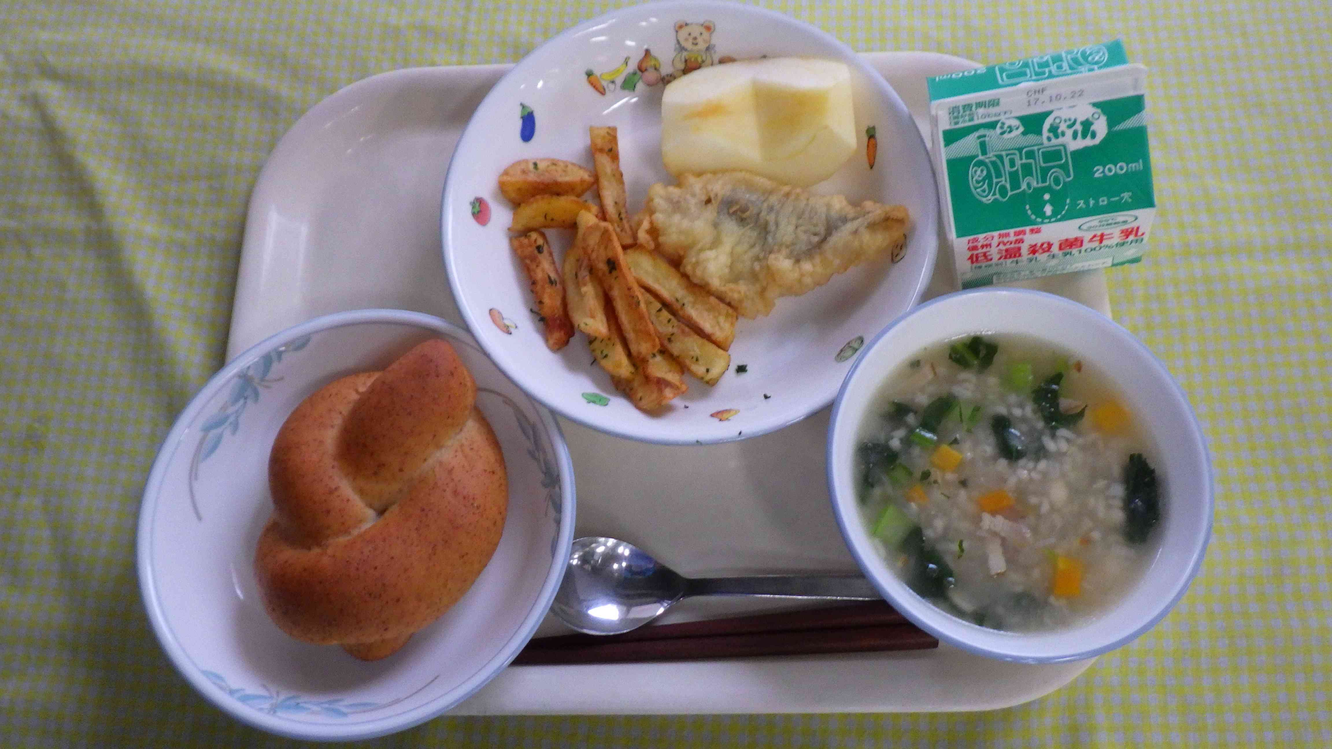 ★世界の料理 イギリス★ 胚芽パン スコッチブロス フィッシュアンドチップス りんご 牛乳
