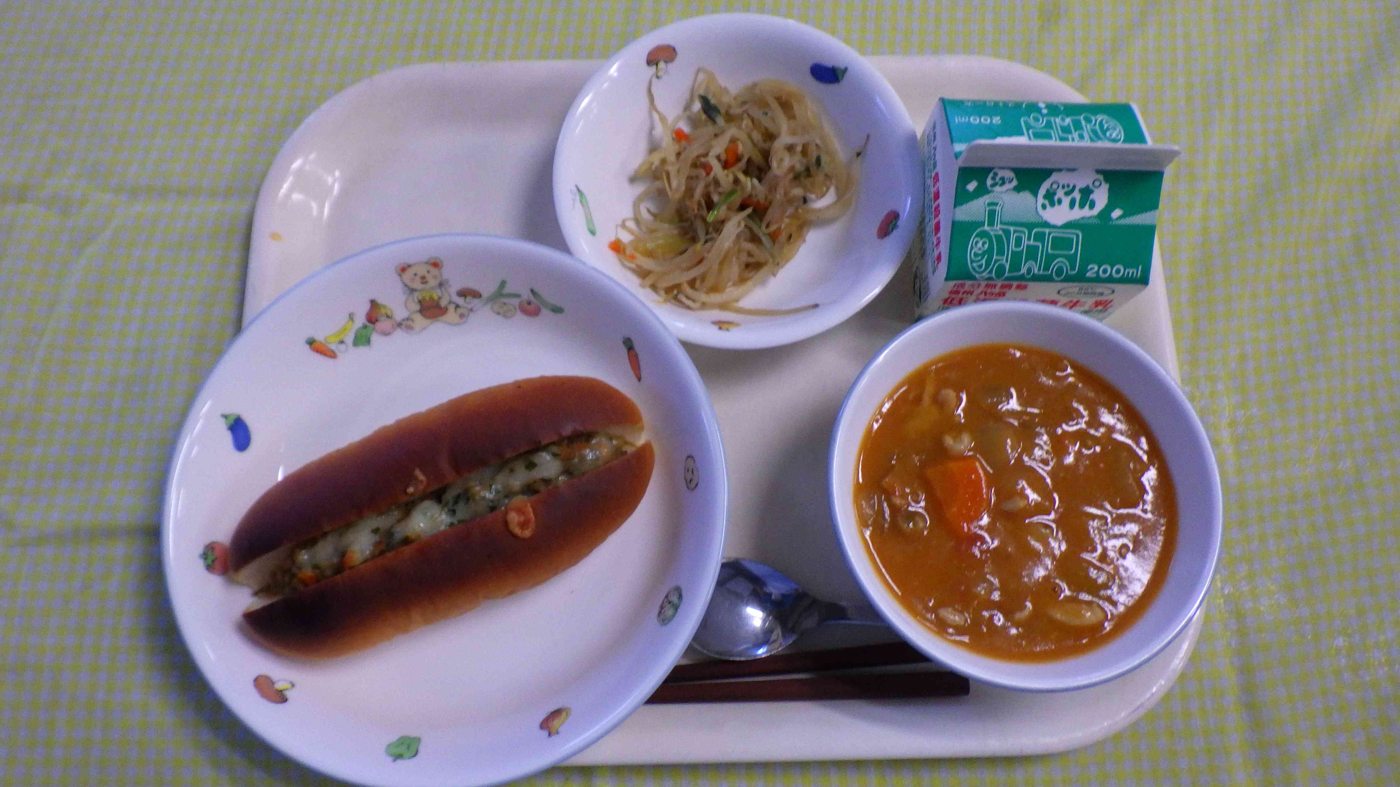 コリコリミートホットサンド トマトシチュー 温野菜 牛乳