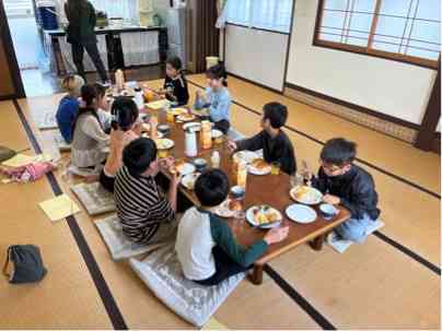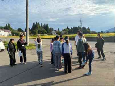 6:30〜 各宿の様子を見回りました。 「よくねむれた?」と問いかけに、子どもたちは元気に「よく眠れたよ」と返してくれました。また、宿を出ると近くでクワガタを見つけて班で盛り上がっていました。 中には、疲れが見え始めた子も見え始めていますが、疲れを吹き飛ばすような楽しい活動をしていきます。 本日は、午前中は稲刈りを行う予定です。