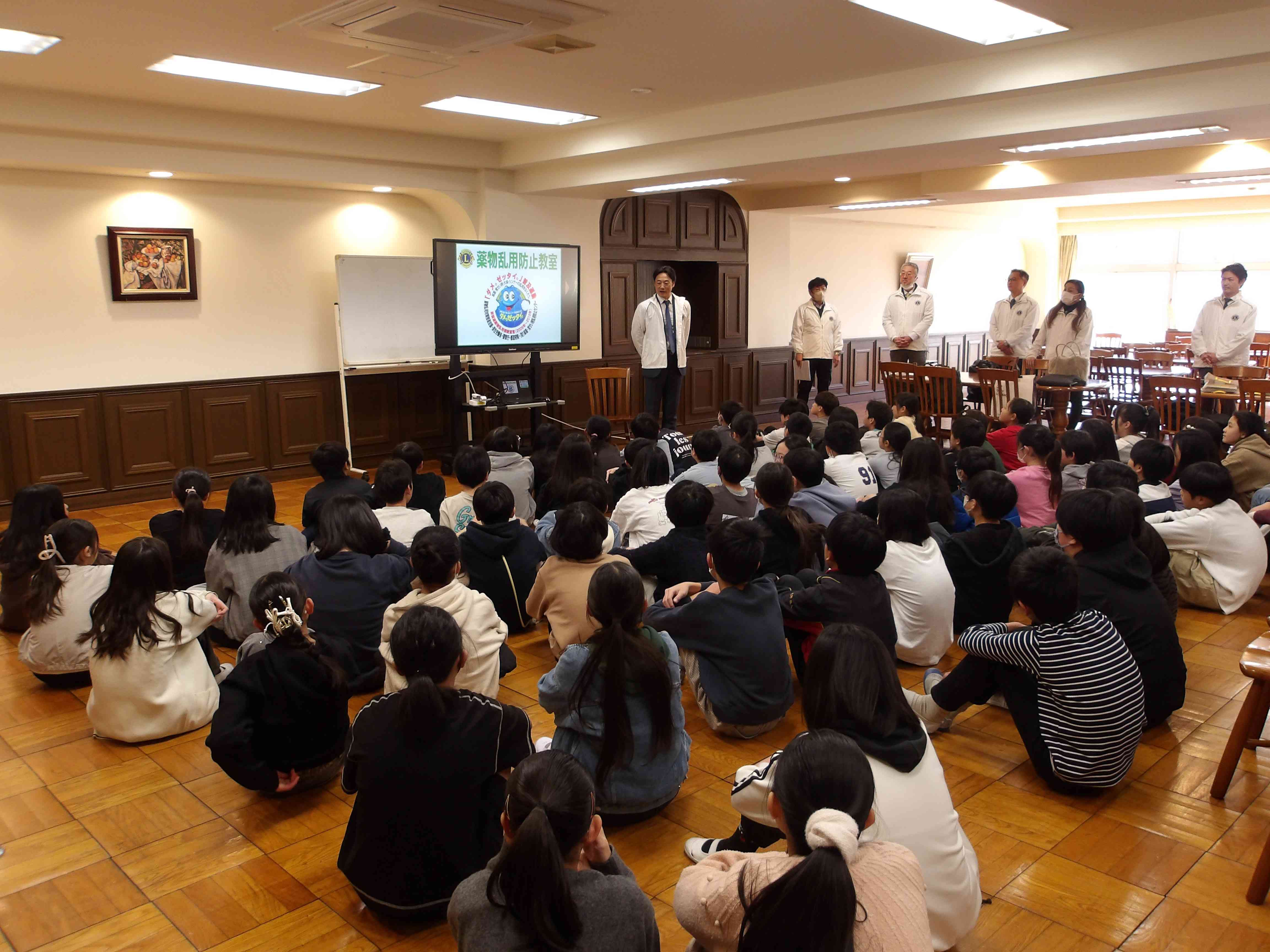 6年生は、ライオンズクラブをお招きして、薬物乱用防止教室を行いました。 薬物の種類や及ぼす影響、断り方などについて学ぶことができました。 最後は、「ダメ、絶対」を唱えて終わりました。