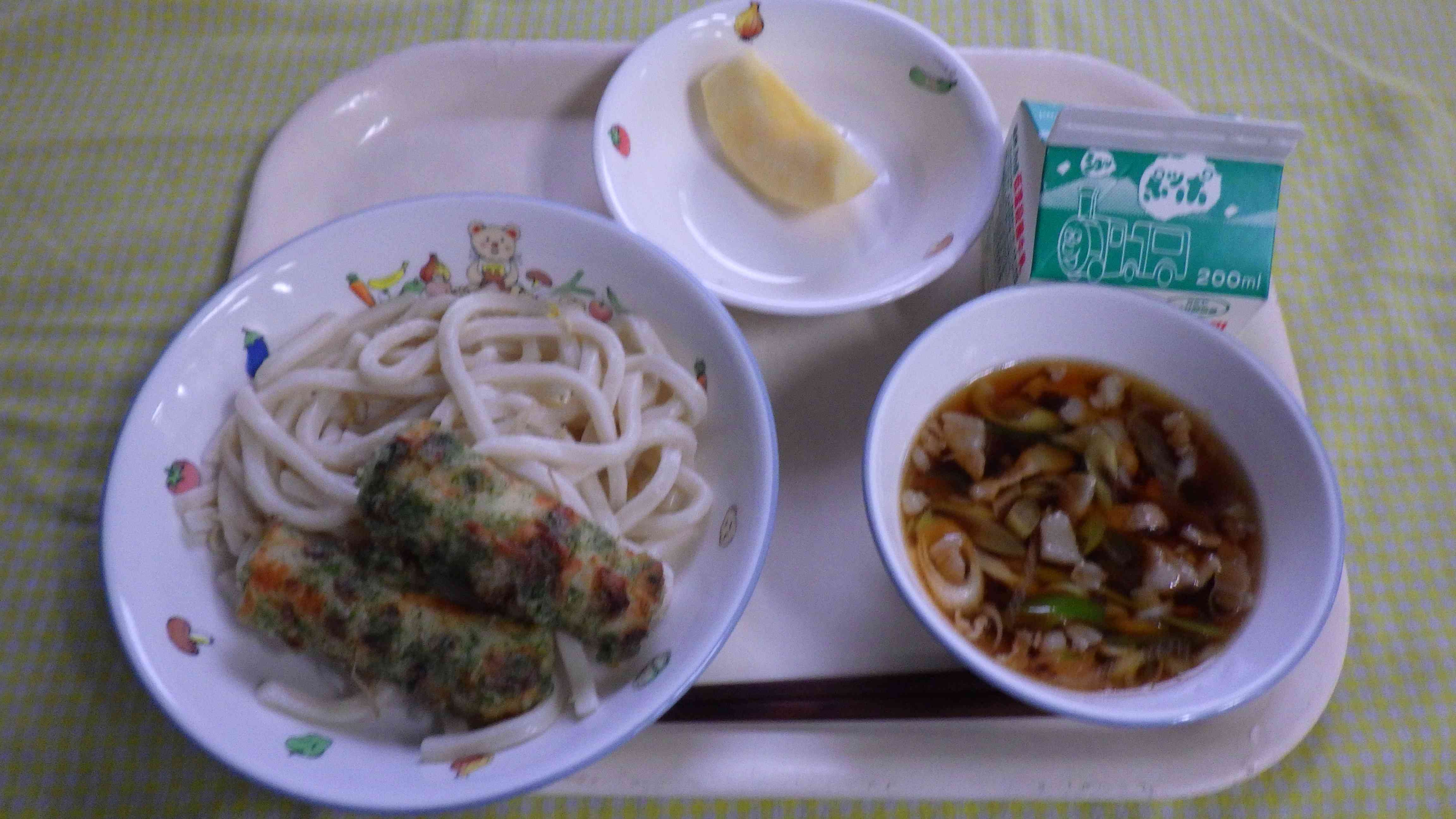 ★武蔵野市共通メニュー★ 糧うどん ちくわの磯辺揚げ りんご 牛乳