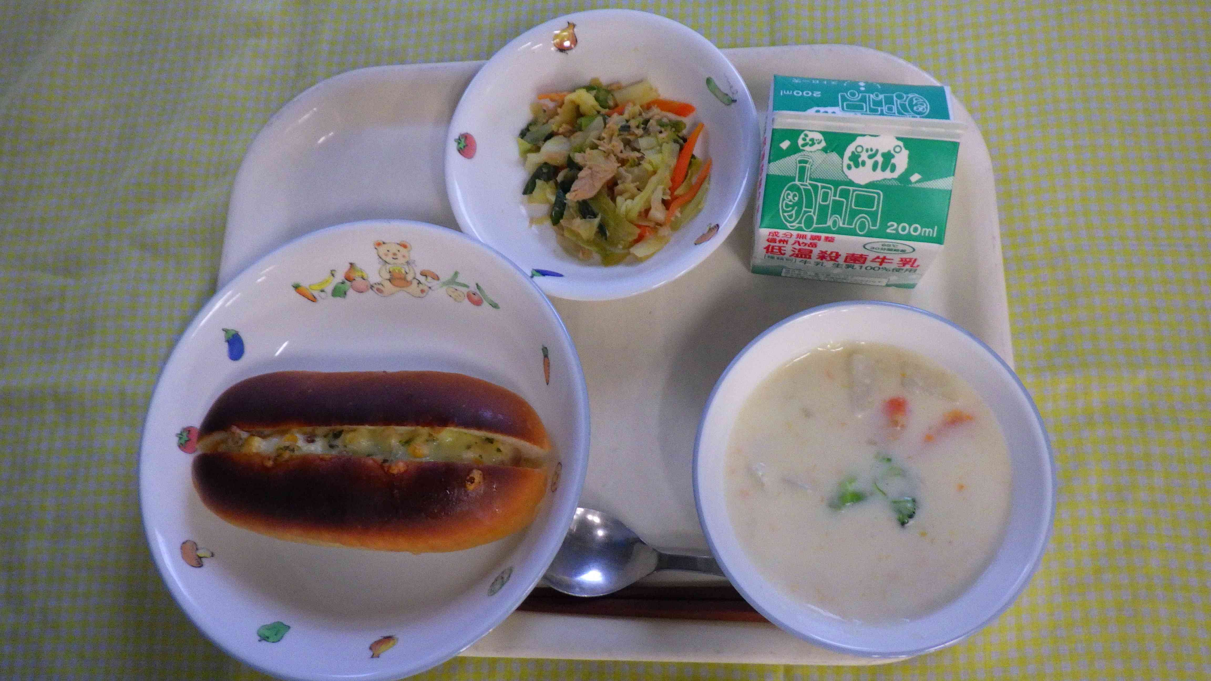 コーンマヨネーズサンド とりとかぶのホワイトシチュー ツナと野菜のソテー 牛乳