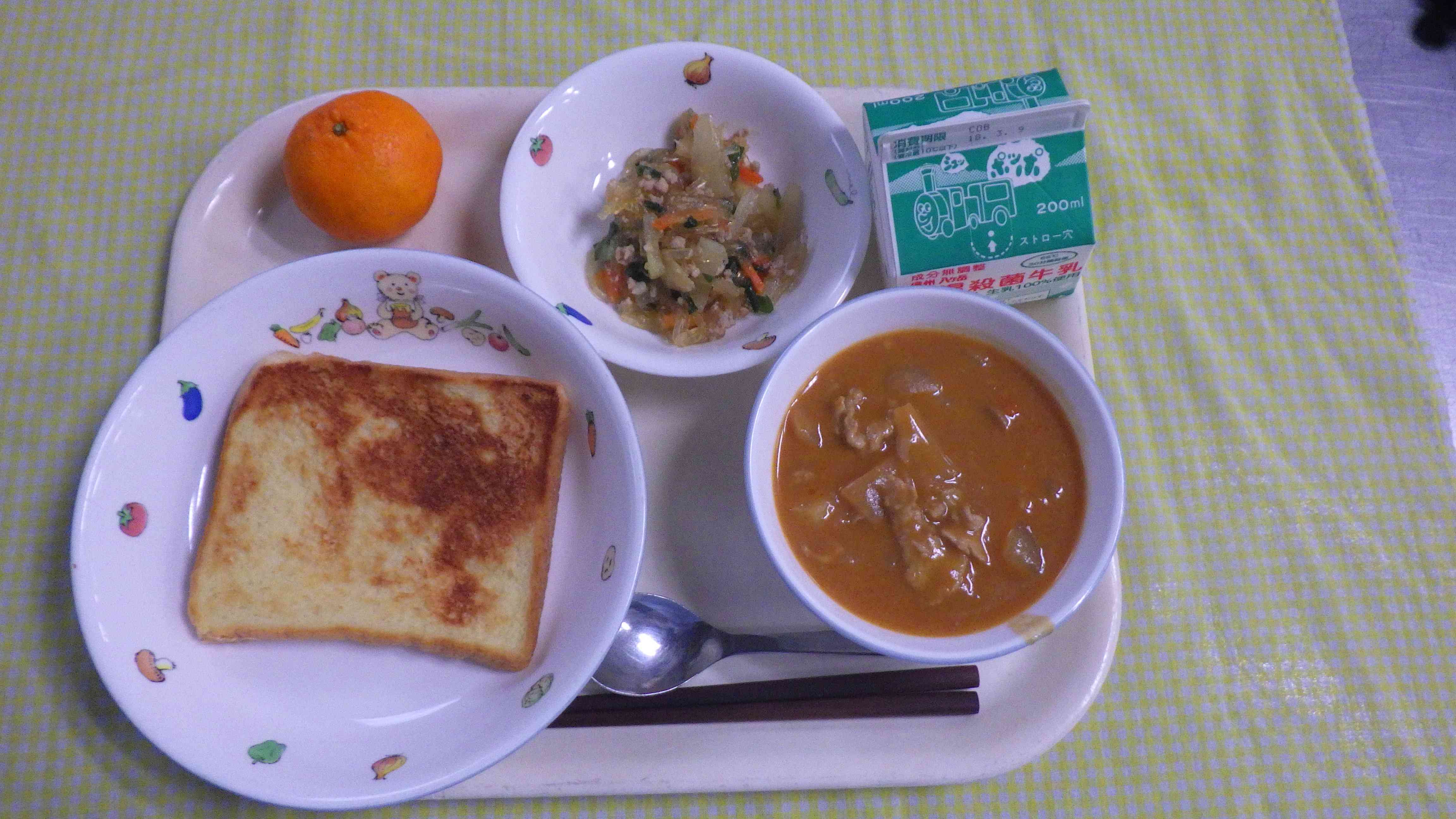 フレンチトースト ポークシチュー 春雨と大根のピリ辛炒め ぽんかん 牛乳