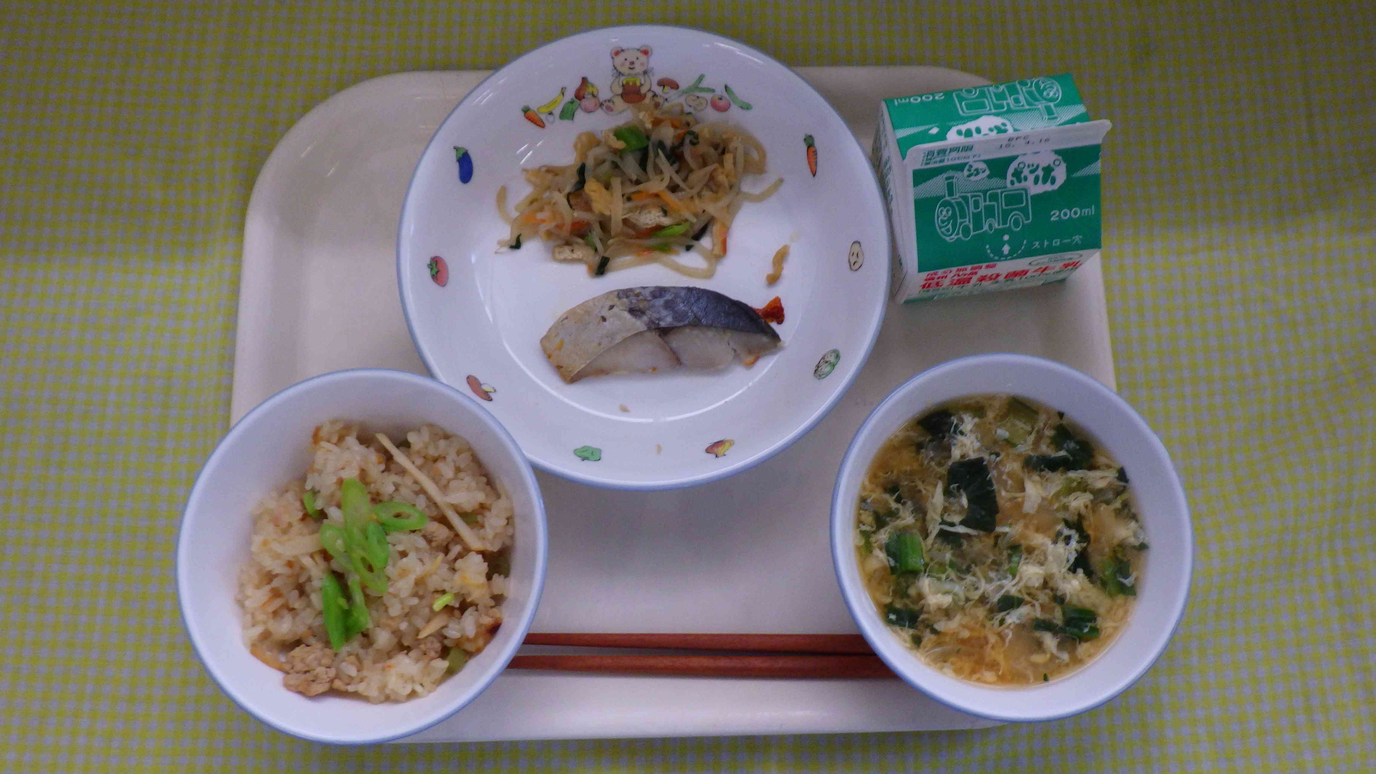 春の香りごはん みそ汁 鰆の塩麹焼き 切り干しの温野菜 牛乳
