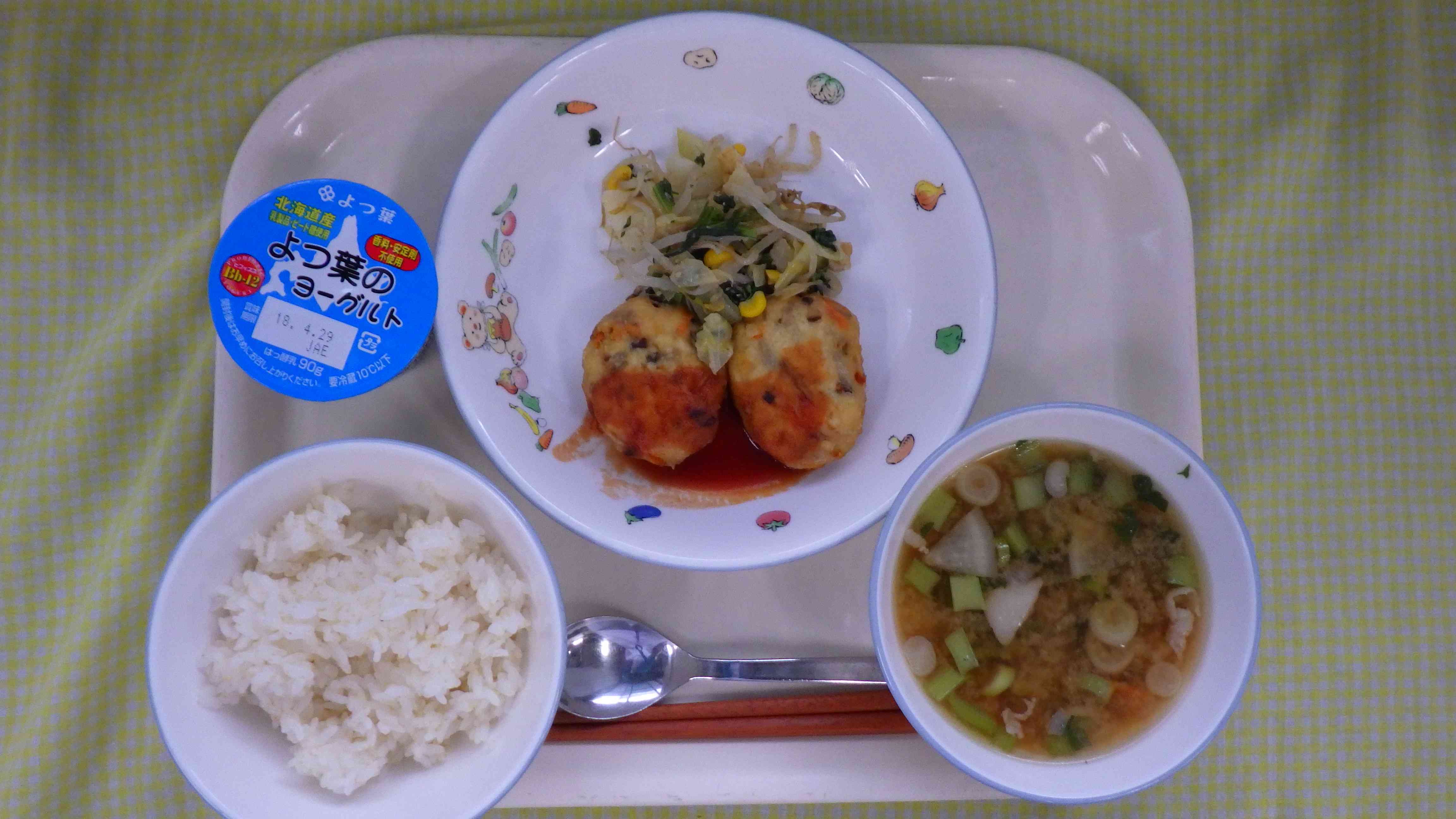 ごはん 実だくさんみそ汁 豆腐ナゲット 野菜炒め ヨーグルト