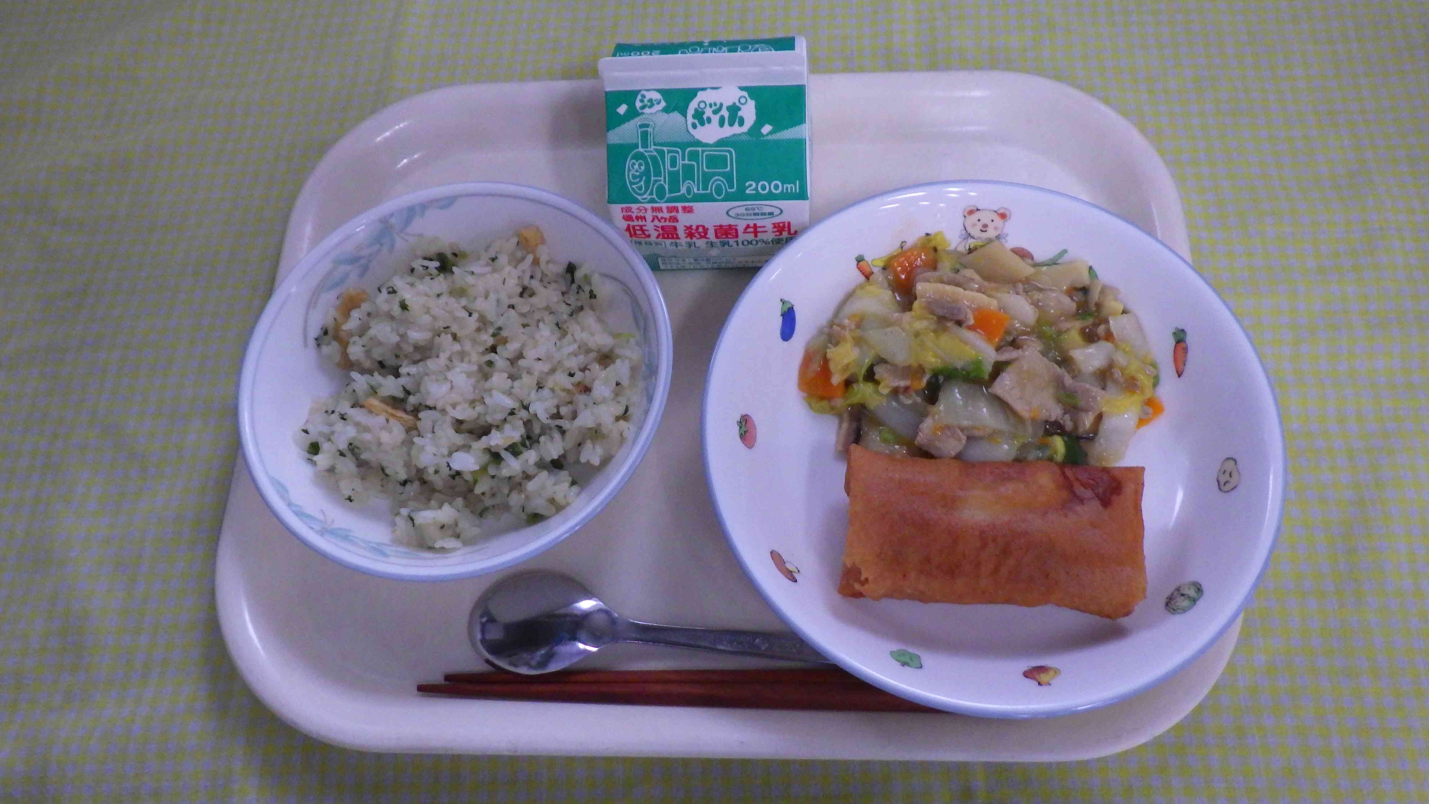 揚げ入りガーリックチャーハン 中華炒め 変わり春巻き 牛乳
