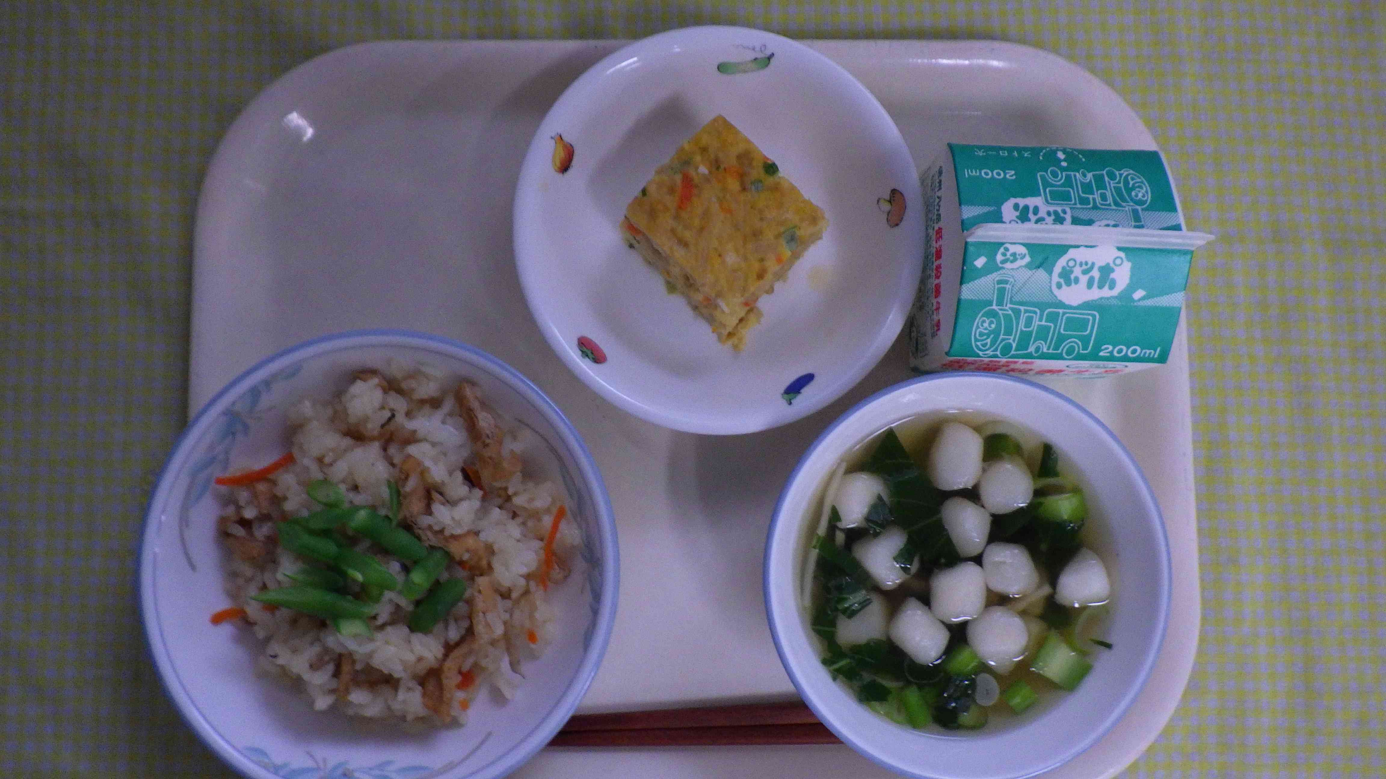 油揚げ寿司 すまし汁 かんころ大根の厚焼き卵 牛乳
