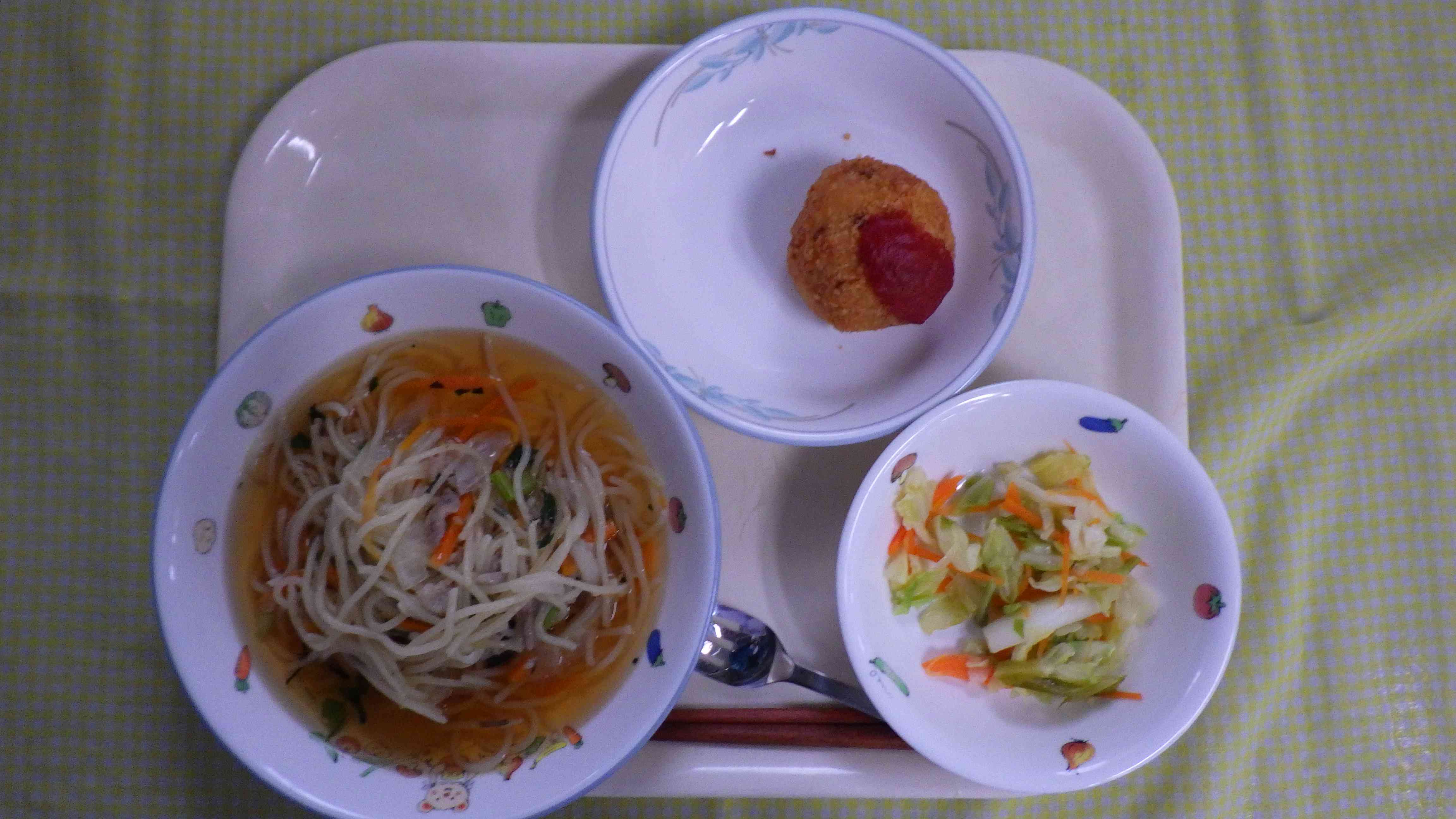 和風スープスパゲティ ライスコロッケ キャベツソテー 牛乳