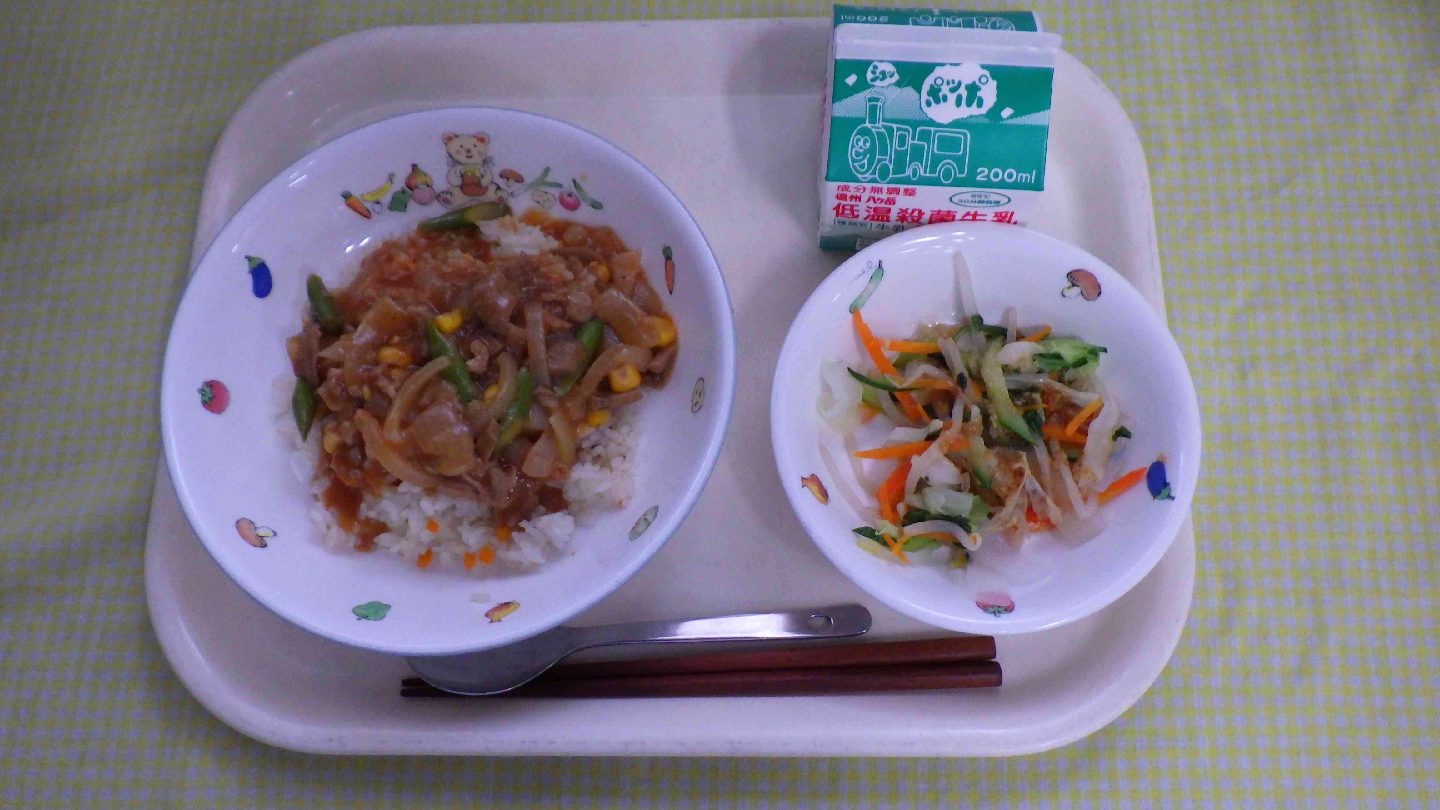 夏野菜のポークストロガノフ ボイル野菜 韓国風ドレッシング 牛乳