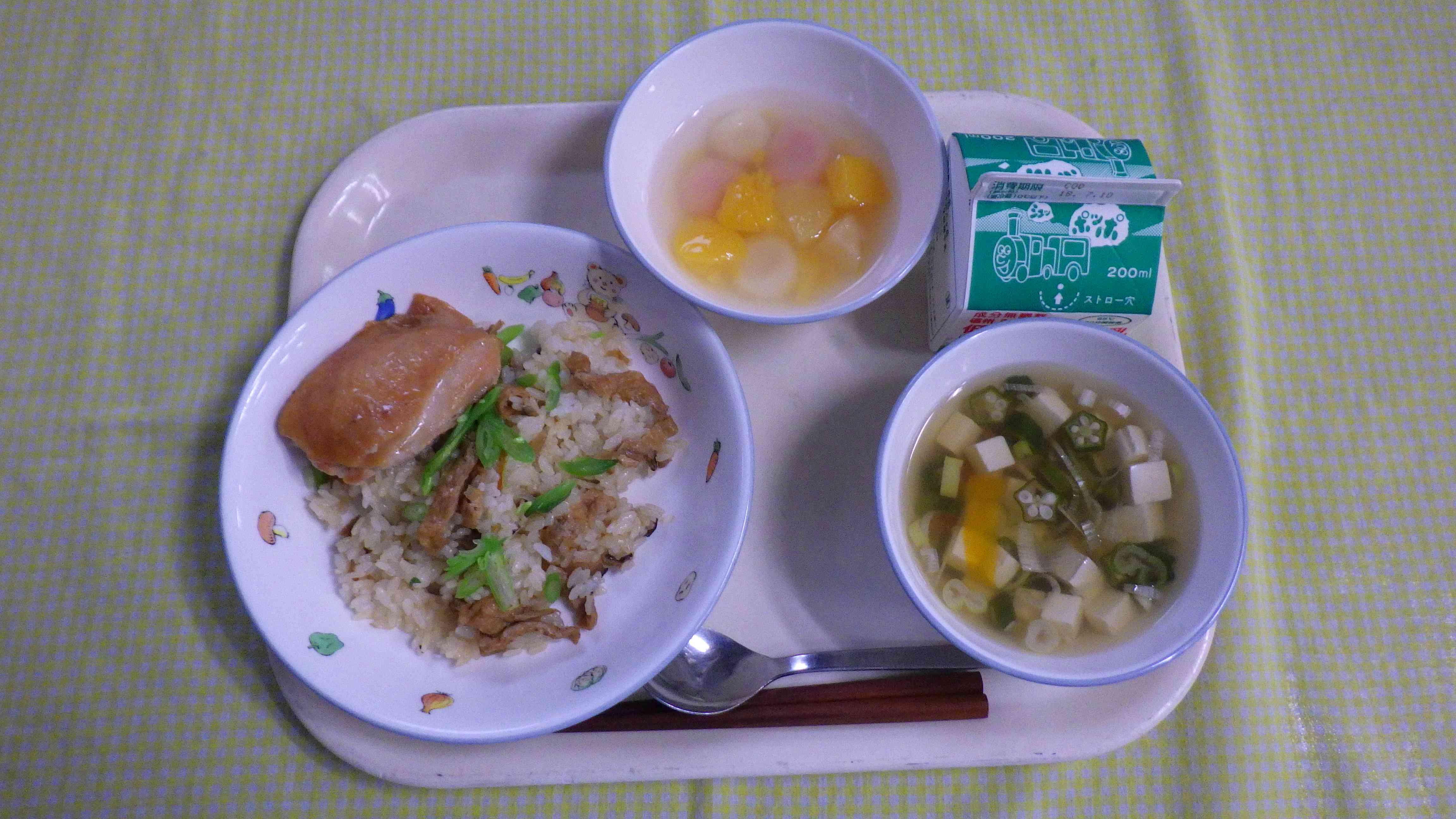 ★七夕メニュー★ 油揚げ寿司 七夕汁 鶏の西京焼き フルーツ白玉 牛乳