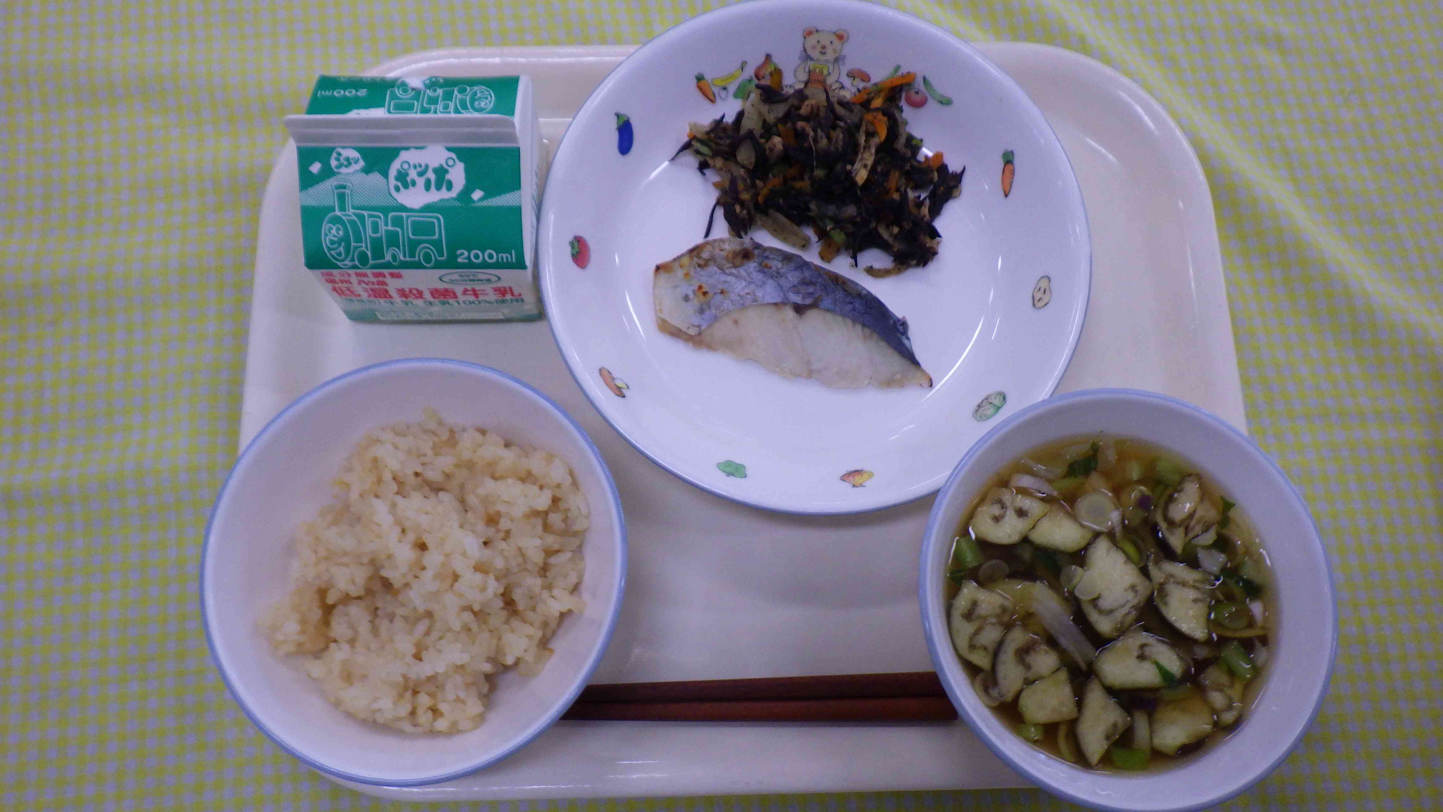 新生姜ごはん みそ汁 鰆の塩こうじ焼き ひじきの炒め煮 牛乳